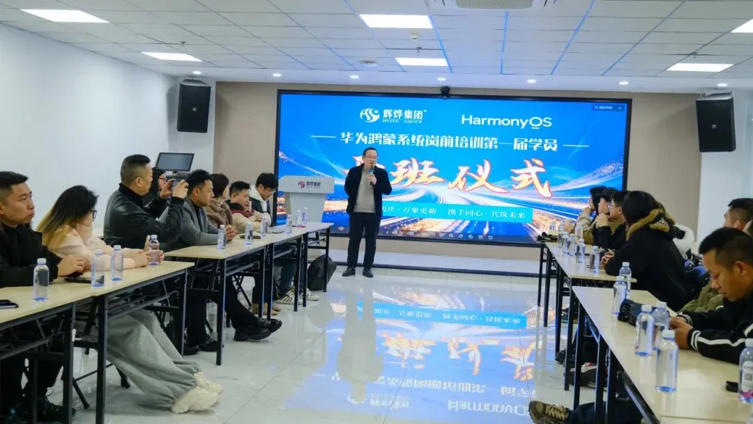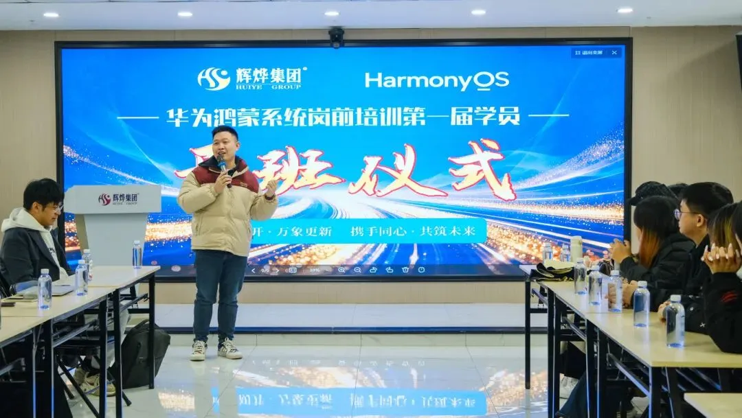 为深化校企合作,推动鸿蒙生态人才培养,近日,华为鸿蒙系统岗前培训第一届学员走进辉烨集团,开展企业参观与开班仪式活动。