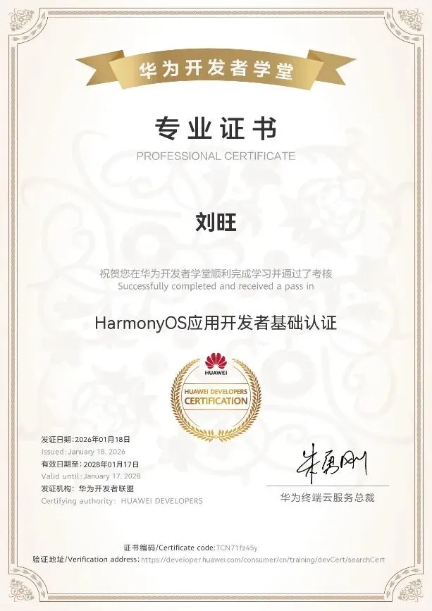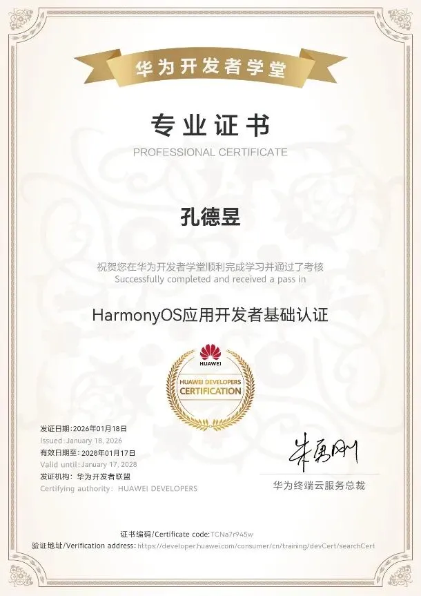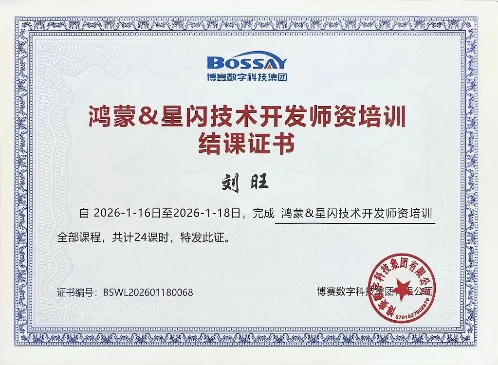 两位教师顺利完成全部培训任务,通过结业考核并成功获得HarmonyOS应用开发者基础认证证书。下一步,人工智能学院将以本次参训成果为抓手,推动“鸿蒙系统应用开发”微专业在课程资源迭代、实验实训项目库建设、案例库完善与学生创新竞赛指导等方面加快落地,持续提升学院人才培养质量与服务区域数字产业发展的能力。