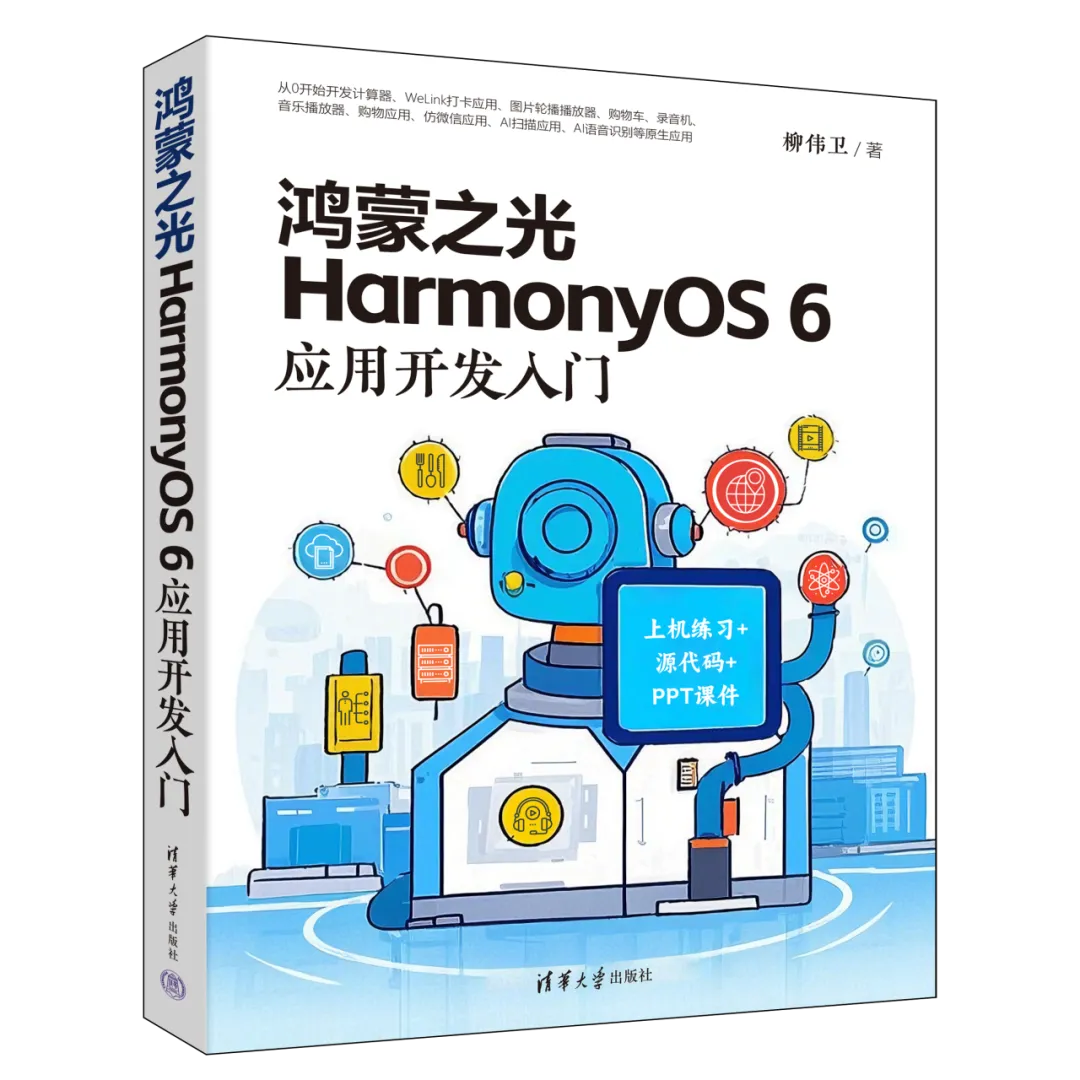 对于想要系统入门纯血鸿蒙6开发、快速打通“理论-实战”壁垒的开发者而言,《鸿蒙之光HarmonyOS 6应用开发入门》无疑是绝佳选择。这本书以HarmonyOS 6版本为核心,用18章内容构建了从基础到高阶的完整知识体系,既细致拆解了系统架构、ArkTS语法、ArkUI开发等核心理论,又搭配了计算器、WeLink打卡系统、视频AI字幕、AI扫描应用等梯度实战项目,覆盖基础功能、复杂交互到AI能力集成的全场景。更贴心的是,书籍附赠经过严格测试的完整源码和配套PPT课件,源码可直接导入DevEco Studio运行,PPT能辅助梳理知识框架,大幅降低新手调试和复习成本。无论是零基础爱好者、转行技术新人,还是高校学生、培训机构学员,都能借助这本书快速掌握纯血鸿蒙开发技能,从入门到独立完成实战项目,在鸿蒙生态赛道中抢占先机。