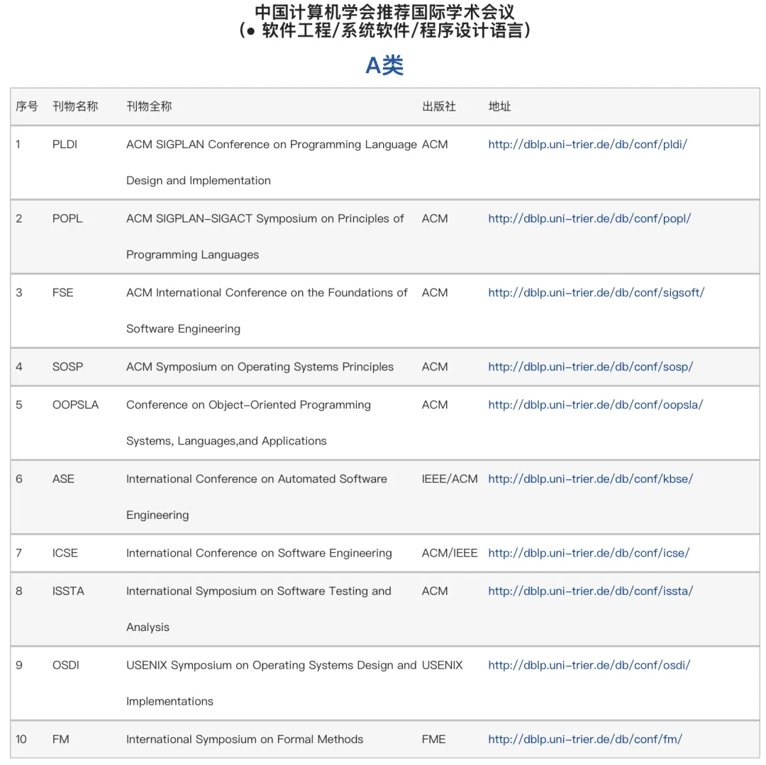 中国计算机学会CCF推荐国际学术刊物(软件工程/系统软件/程序设计语言)