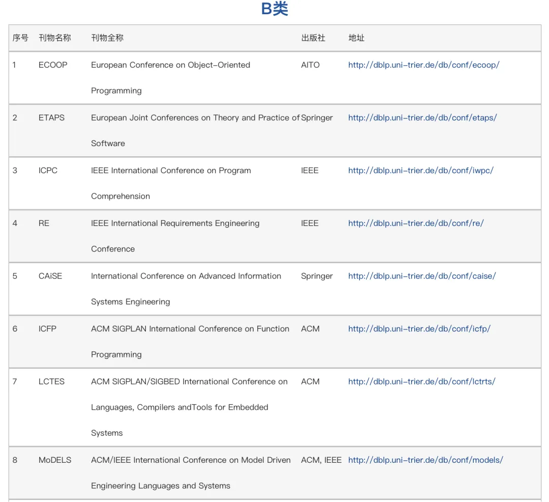 CCF推荐期刊和会议目录: