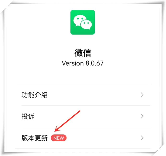 正常情况下,如果你的手机微信收到新版本推送,可以看到“我 - 设置 - 关于微信”有小红点,在“版本更新”中有一个红色的“NEW”,点击之后就可以看到8.0.68版本微信,下载并安装即可升级到最新版本。