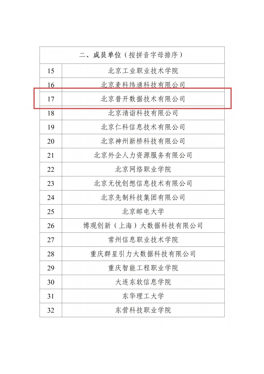 2026 年 1 月 13 日,工信部人才交流中心发布通知,公布鸿蒙人才发展促进工作组首批成员单位,北京普开数据技术有限公司(即普开数据)以成员单位身份入选,一同入选的还有 14 家发起单位与 125 家成员单位,覆盖政产学研用多领域,旨在构建鸿蒙人才生态,助力鸿蒙生态高质量发展。