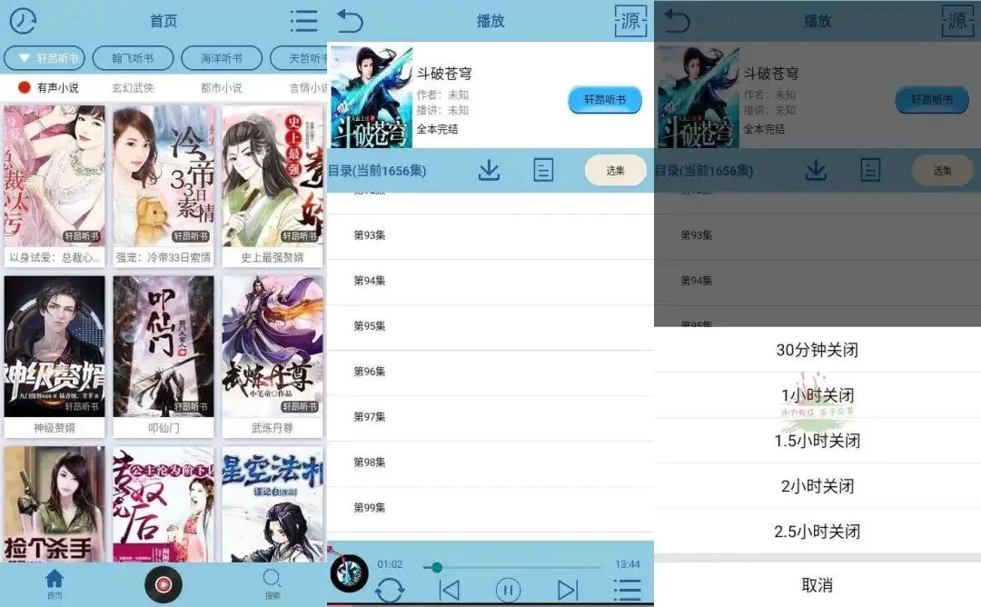 昊昊听书是一款免费的听书 APP,玄幻武侠、恐怖悬疑、历史军事、都市言情等各种小说资源非常丰富,资源库自带 10 个播放源,不同播放源所涉及的听书内容也各不相同,除了常见的网络小说资源之外,还有很多国学大师的评书作品,甚至是全国各地的电台节目也都有所收录。支持跳过片头片尾、倍速播放、定时播放、定时关闭。