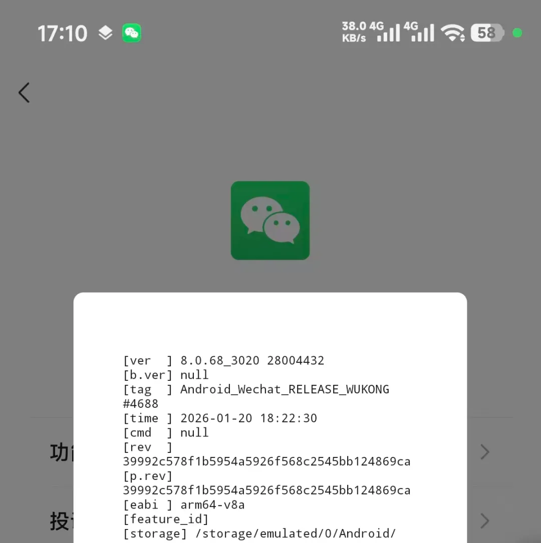 本次的安卓微信 8.0.68 正式版的后缀号:3020+,大家可以查看你的版本的后缀号哦!