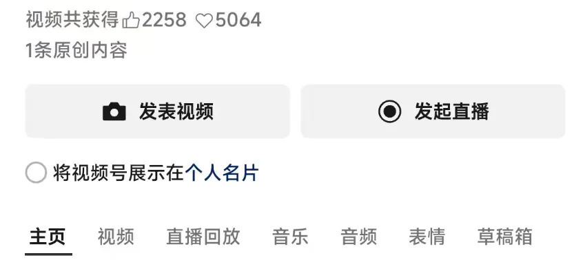 在我的视频号中新增了点赞和爱心的统计,这下你就可以看到你的视频共获得的数据啦!