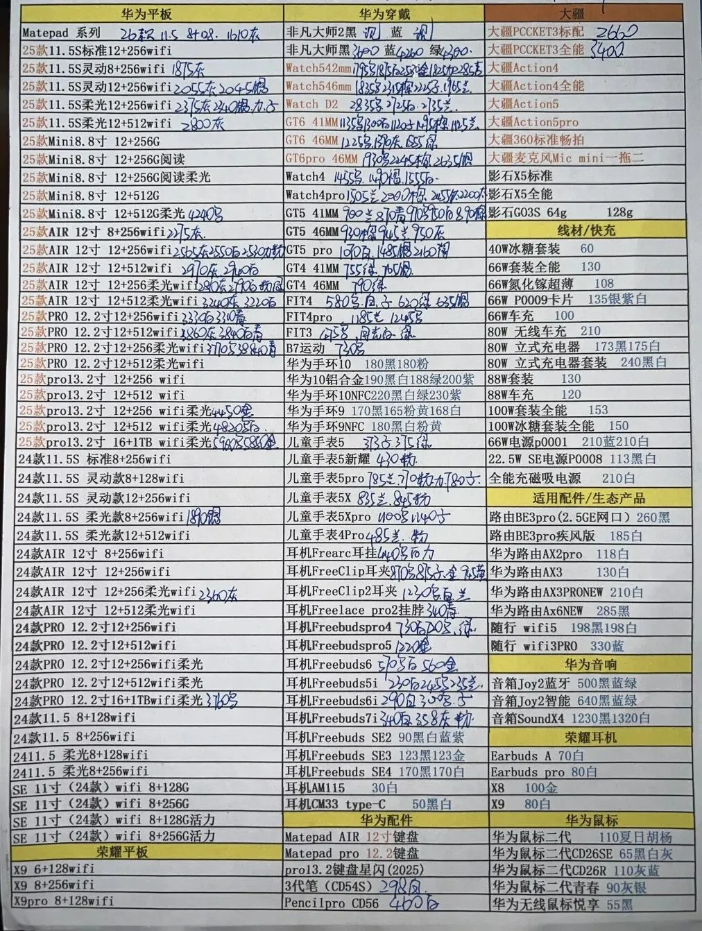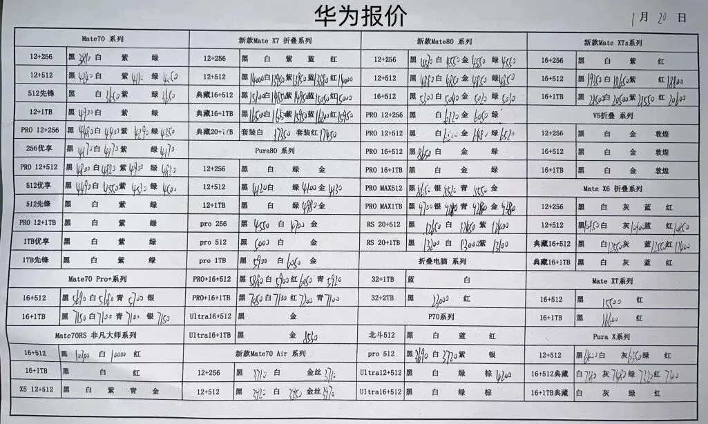华为平板手表和三星报价不常更新
