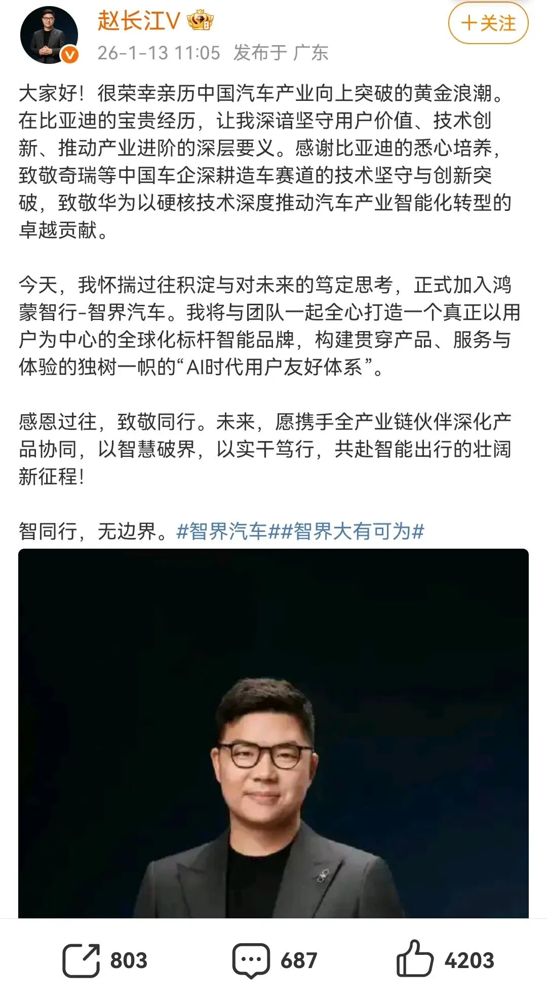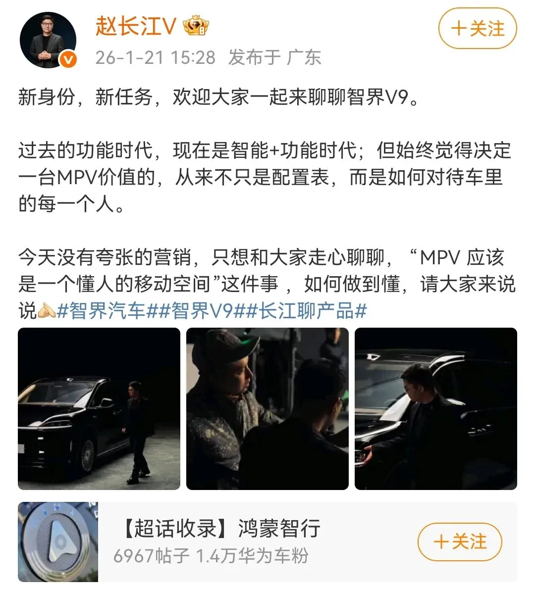 现在到华为鸿蒙智行智界旗下工作,最近在宣发智界V9时,大家都表示看赵长江的言行举止,明显一下就“高端”、“有气质起来了”。这样看来,华为鸿蒙智行建立仅两年多时间,就能成为中国第一高端豪华品牌,并不是没有道理。