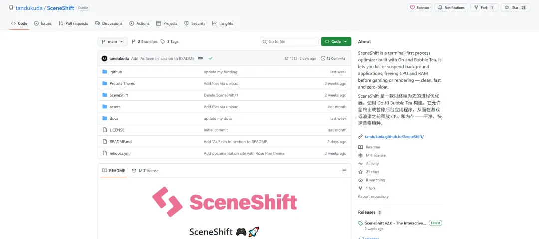 SceneShift是一个开源项目,遵循MIT许可证,这意味着你可以自由地使用、修改和分发它。开发者虽然已在构建时充分考虑了安全性,但由于其直接与系统进程交互,强烈建议你在使用“结束”功能前,保存好所有重要工作。