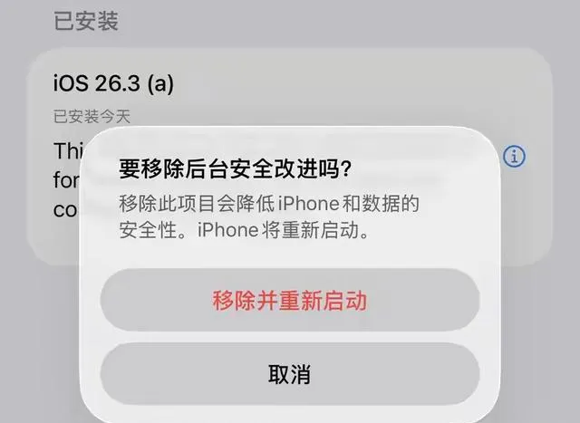 2026年开年,苹果又给果粉们整了个“小动作”——iOS 26.3(a)特殊版本悄悄上线,不走常规推送通道,也没什么新功能,纯粹是为了验证最新的「后台安全改进」机制。不得不说,苹果这波操作还挺低调,毕竟以往每到大版本升级,大家都盯着新功能和UI变化,这次却是藏在“隐私与安全”菜单深处的技术性内测,搞得一批用户一脸懵:这到底是紧急补丁,还是纯粹的系统实验?其实,这背后折射出苹果近年来对安全策略的变化——以前修补漏洞只能等正式版推送,零日风险窗口期不短,如今后台安全改进机制上线,系统随时能推小补丁,安全防护网更灵活也更及时。所以大家可以看到,iOS 26.3(a)虽然不是面向所有用户,但在苹果整体安全战略里,分量还挺重。说到价格,虽然系统没明码标价,但这波“免费体验”对于高端用户来说性价比还挺高——不用等下一版,提前感受苹果安全新逻辑。要说冲击感,原本以为26.3只是常规修复,现在却多了个隐藏彩蛋,喜欢尝鲜的用户肯定不会错过。