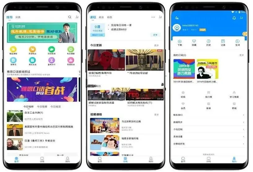 整合听力强化、口语训练、词汇记忆、阅读提升四大模块,满足从基础到进阶的全场景需求