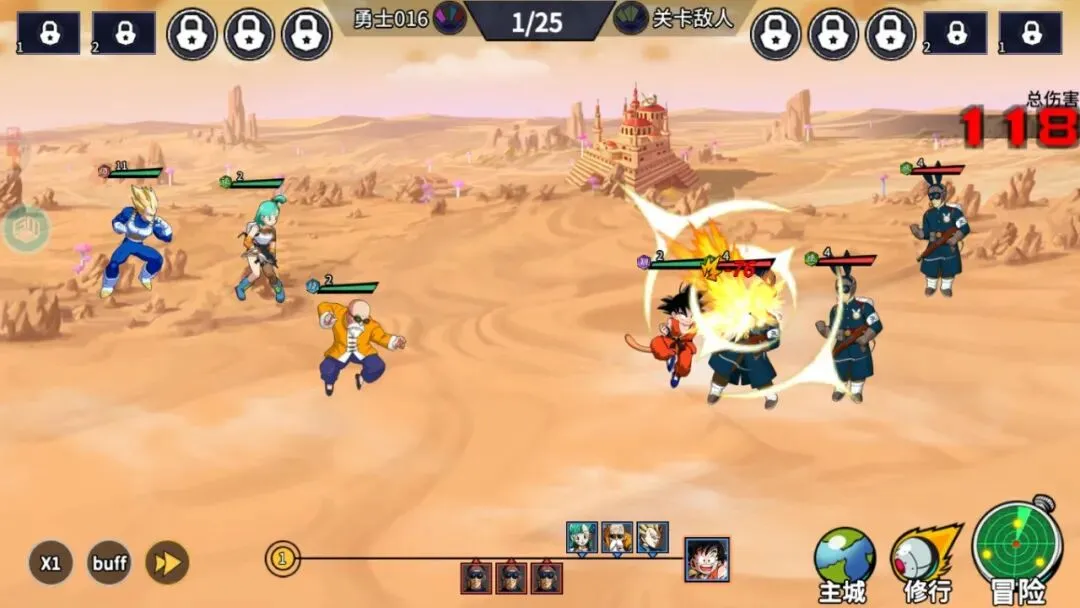 4、获得满意的龙珠英雄之后就可以踏上神奇的冒险之路了,通过不断战斗、挂机和快速累积分来轻轻松松提升等级
