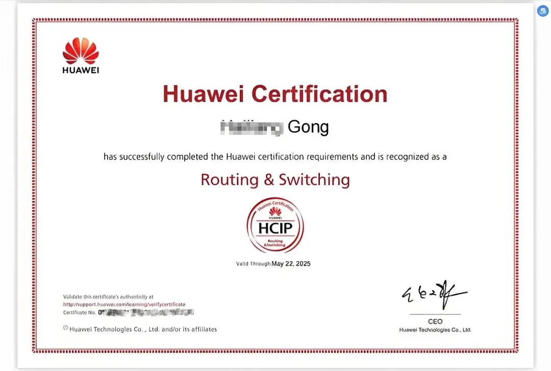 ✅ 技能认证:在校可考取HCIA/HCIP等华为职业认证证书,持证者平均起薪高于行业水平20%;