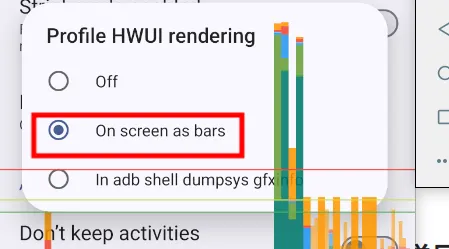 设置 --》开发者模式 ---》Profile HWUI rendering