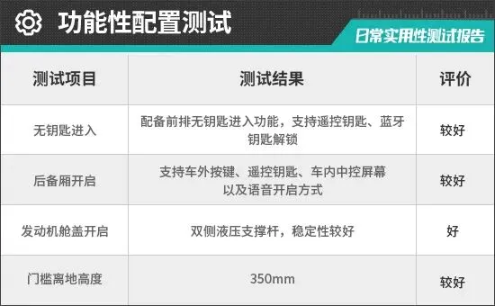 评测车的后备厢支持车外按键、遥控钥匙、车内中控屏幕和语音多种开启方式,操作简单方便,确保了实用性。