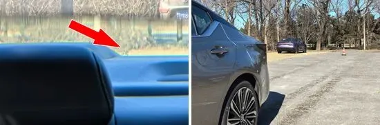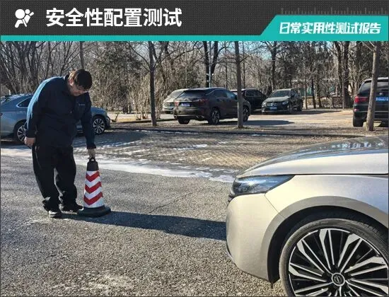 后方视野测试中,依旧将桩桶固定摆放,随后移动车辆直至可以观察到桩桶上沿为止。经实测,评测车后方视野所测得的距离为15.311m,在测试过的同级别车型中处于中游水平。