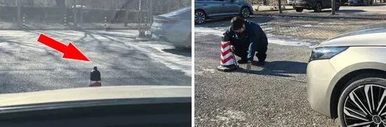 在前方视野测试中,我们采用高70cm的桩桶作为参照物,随后调整车距,直至在主驾驶位可以看到桩桶上沿。经过测试,桩桶与车头最终测得的数据为2.216m,在测试过的同级别车型中处于中游水平。