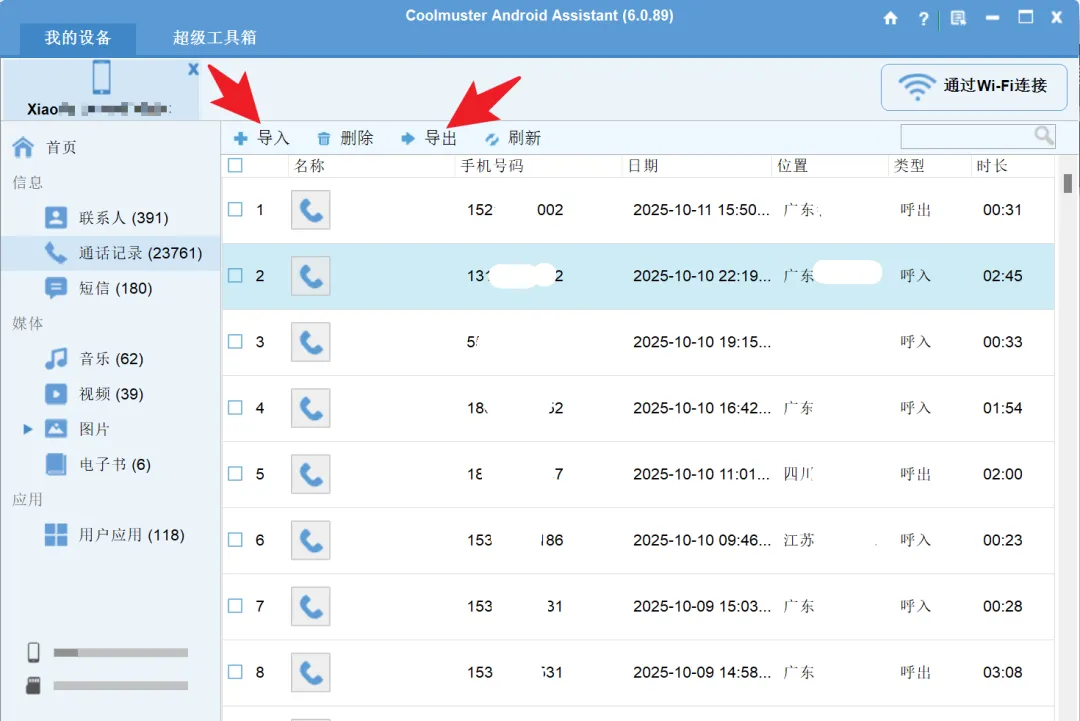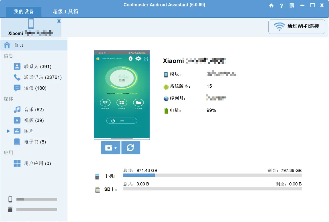 好家伙,联系人、通话记录、短信,甚至音乐、视频、图片、电子书,全在电脑上列得清清楚楚,就像直接打开了手机的“数据仓库”,想看啥点啥,完全不用在手机里翻来翻去。