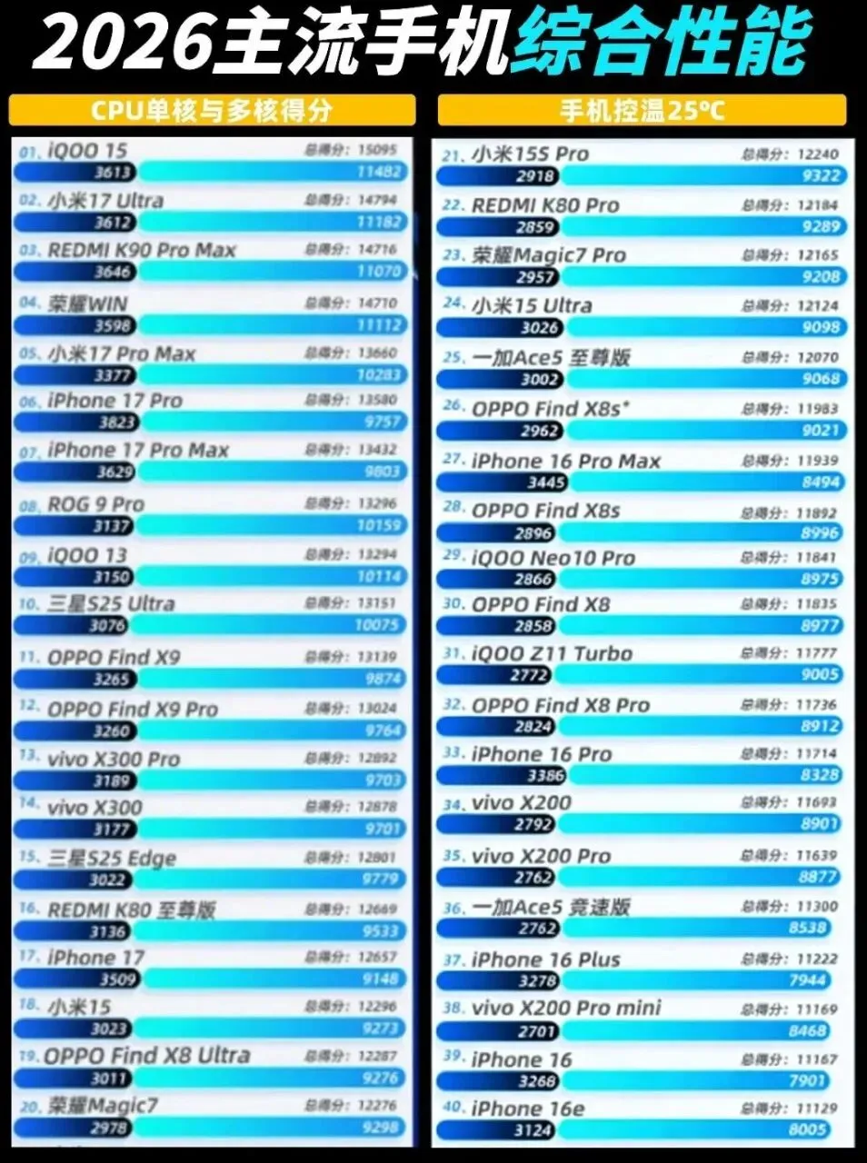 今天我们基于2026年主流手机在25℃控温环境下的CPU单核/多核实测数据,做一次深度的技术解读,看看今年旗舰市场的性能格局到底发生了哪些变化。