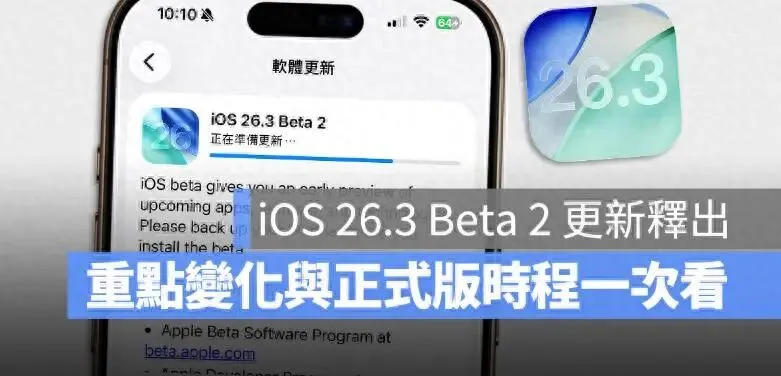 如果你目前在使用iOS 26.3 Beta 1 的开发者,今天开始可以升级Beta 2,效能与稳定度更佳。但若你是正式版使用者,建议等待iOS 26.3 正式版释出后再更新,避免Beta 版潜在风险。
