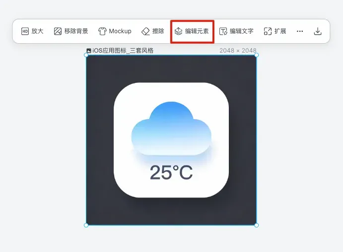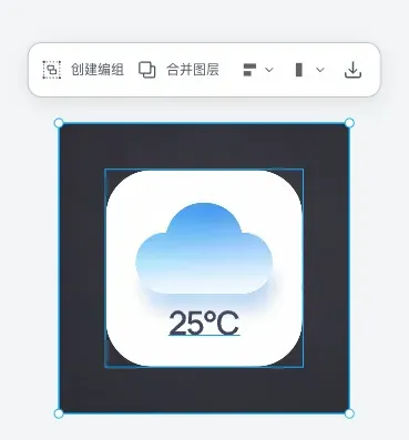 我试了一下,它能把图标里的云朵、温度数字、光影特效拆成单独的图层,然后每个图层可以独立调整。
