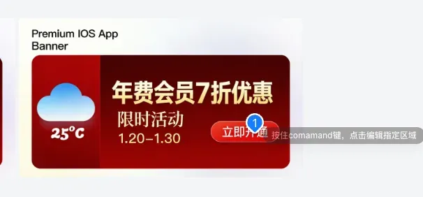 比如说,应用准备推一个年费会员8折优惠的限时活动,需要做Banner用于应用内弹窗和社媒推广。