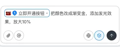 用Touch Edit选中按钮,说把颜色改成渐变金,添加发光效果,放大10%。