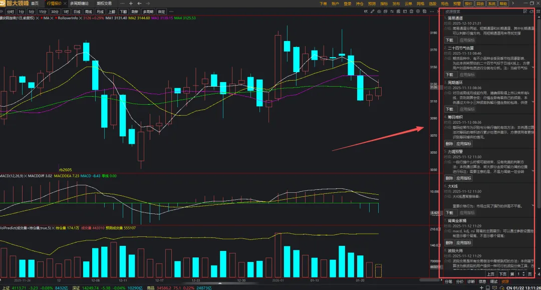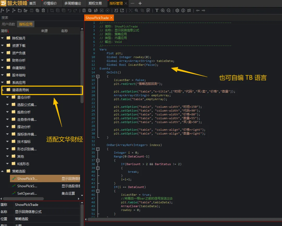 4 Fuller自定义的期权页面。涵盖多周期,T型报价,损益图 5 自编指标灵活,文华财经的(麦语言),通达信的语言 90%高度相关,可直接创建简语言代码,复制自编。也可使用TBQuant语言自编指标。https://video.tbquant.net/video?id=20251230165311703739