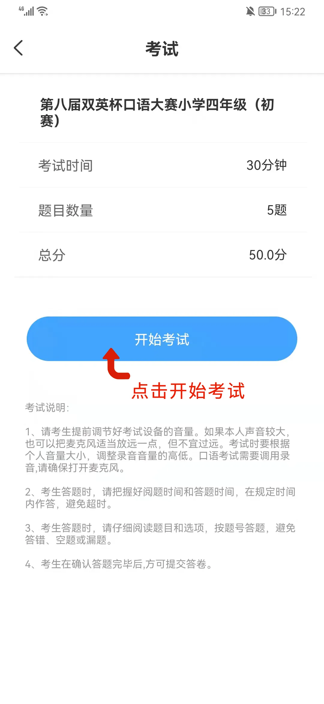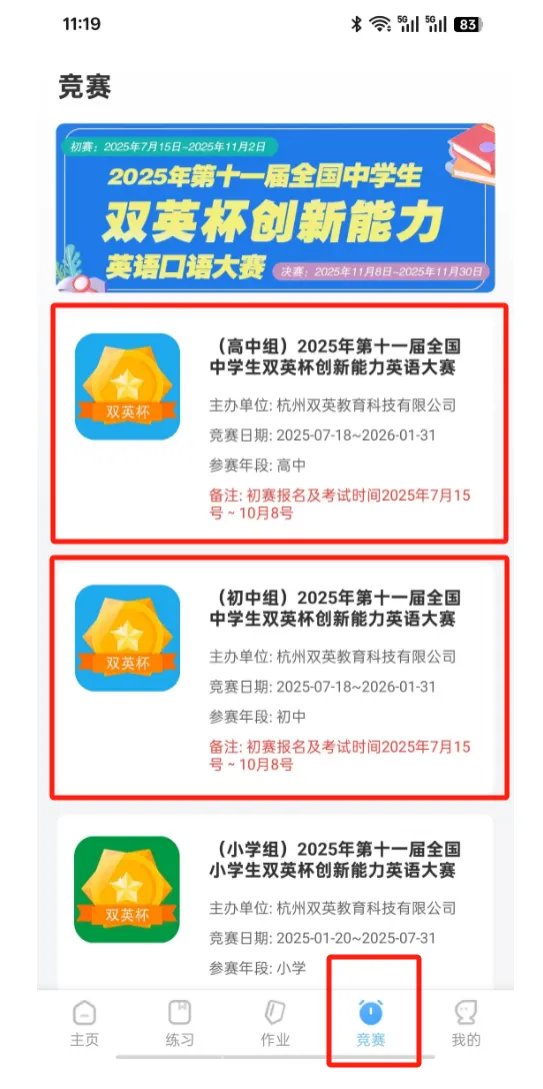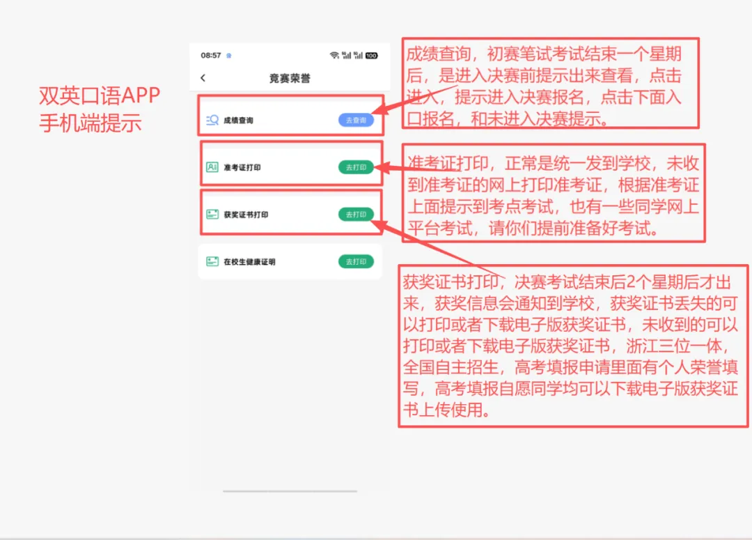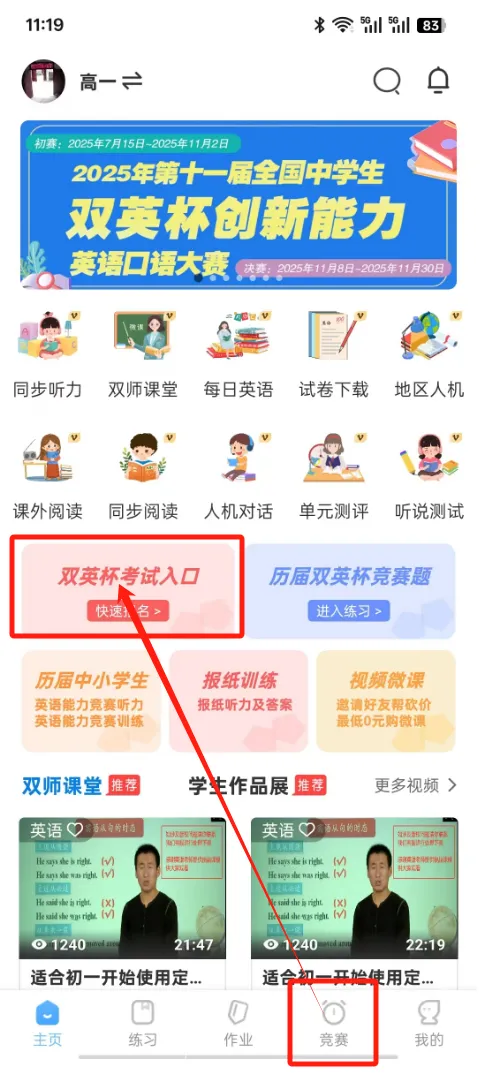 ①安卓用户在软件商店内搜索“双英口语”APP(或扫描文件末尾二维码下载,点击我是学生,注册,登录报名比赛);