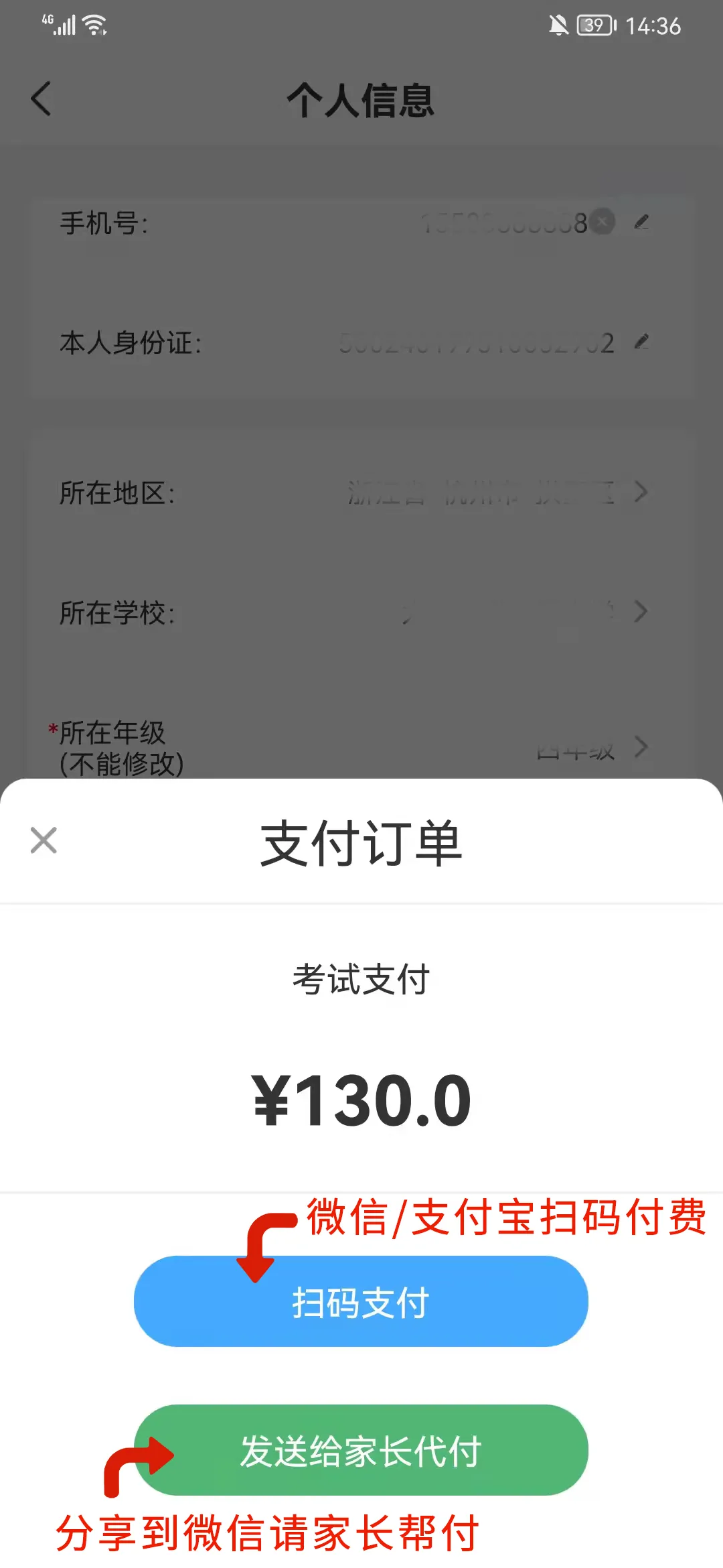 (3)手机扫码缴费报名,付费报名成功后,即可参加考试。