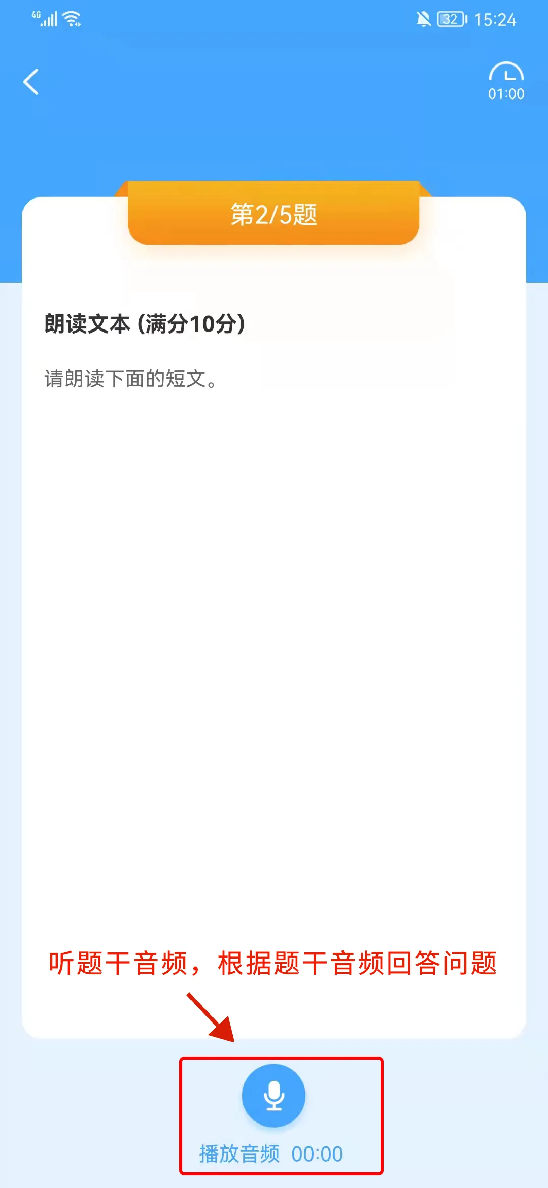 (2)考生特别注意:准备时间是用于思考答案的,准备时间结束后,才开始正式录音作答。准备期间作答,声音无法录入,会影响考试得分。