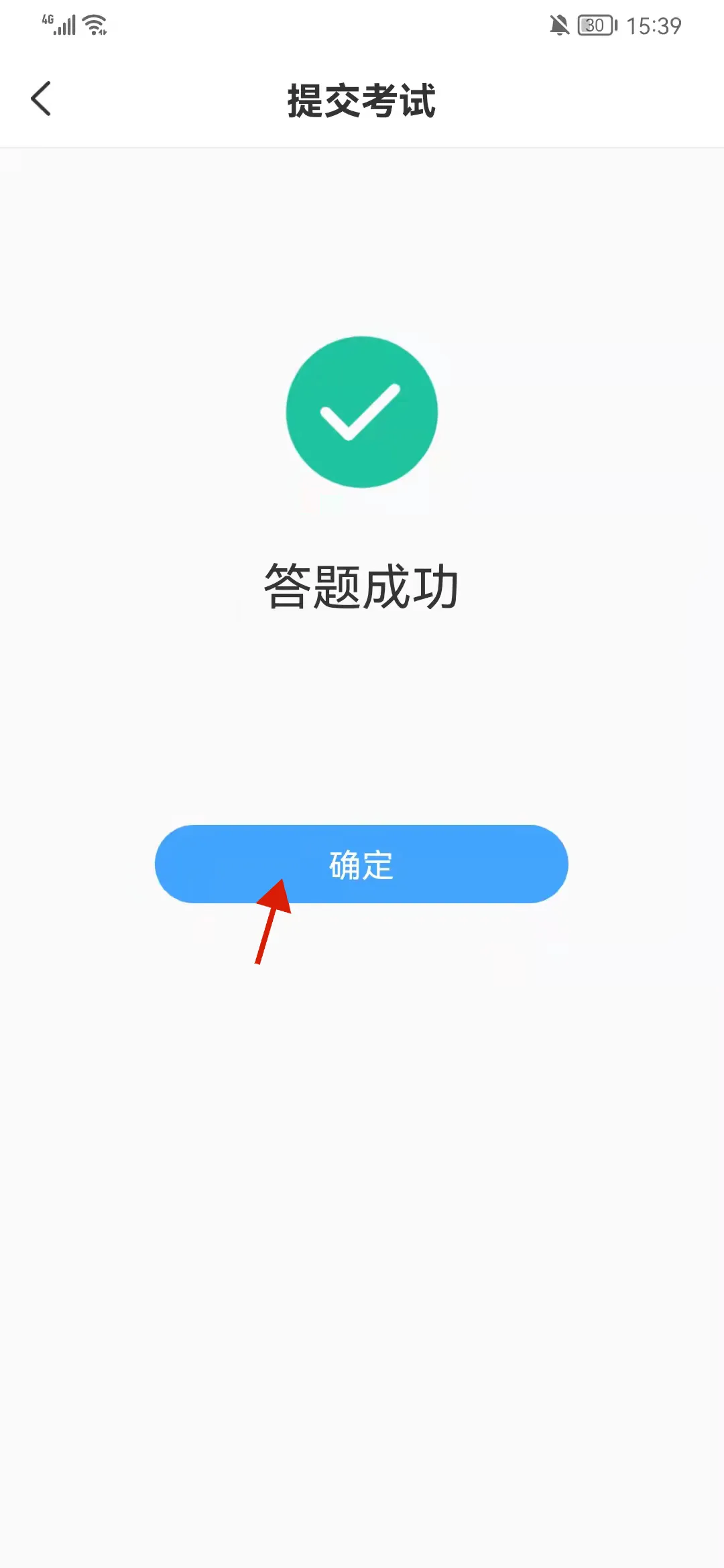 (4)考试结束后系统自动提交答案,点击“确定”返回上级页面。