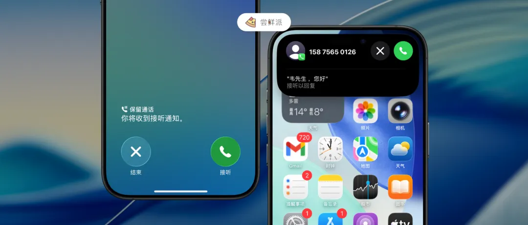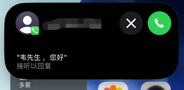 •手机铃声会再次响起•锁屏/灵动岛弹出接听选项•还能短暂显示文字转录(让你不会错过客服第一句话)