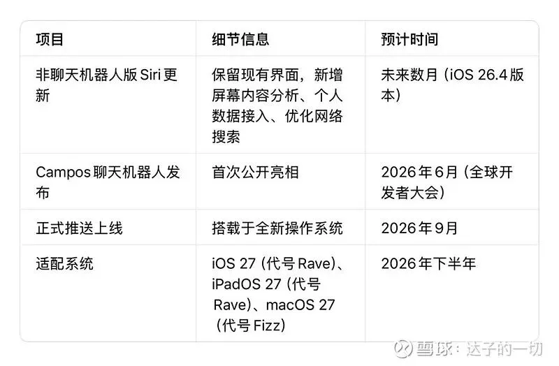 注:苹果此前承诺的iOS26.4版本Siri更新,将优先落地2024年公布的基础功能升级,为后续聊天机器人版本铺路。