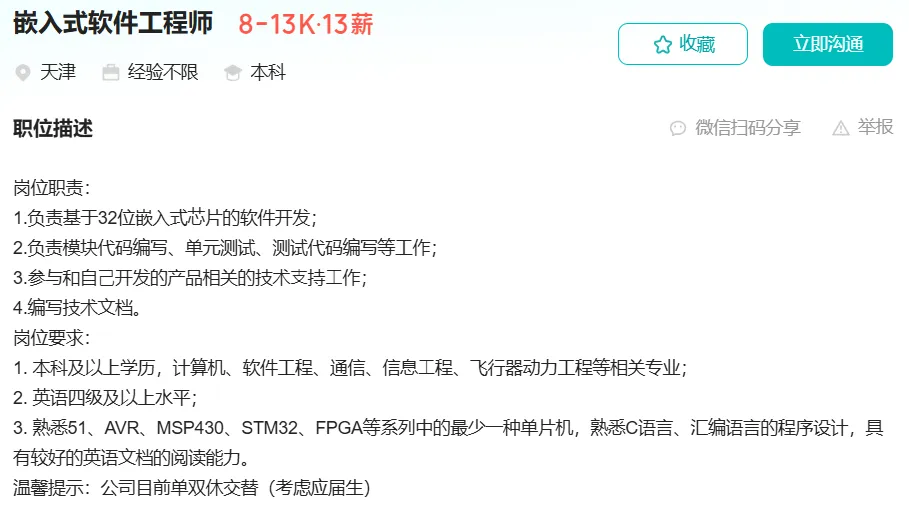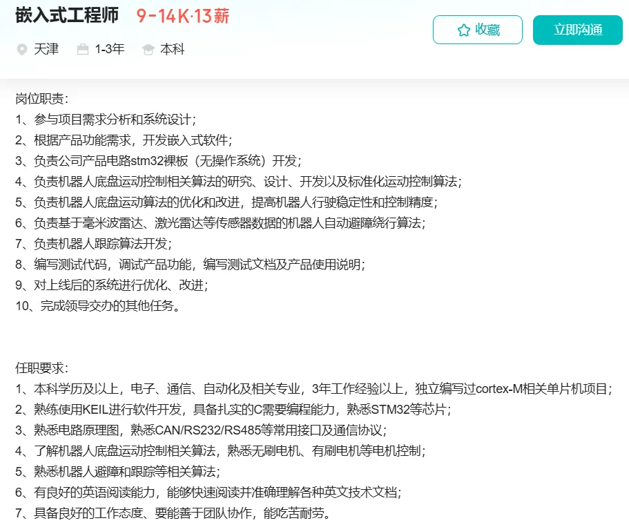 1)本科学历及以上,电子、通信、自动化及相关专业,3年工作经验以上,独立编写过cortex-M相关单片机项目;
