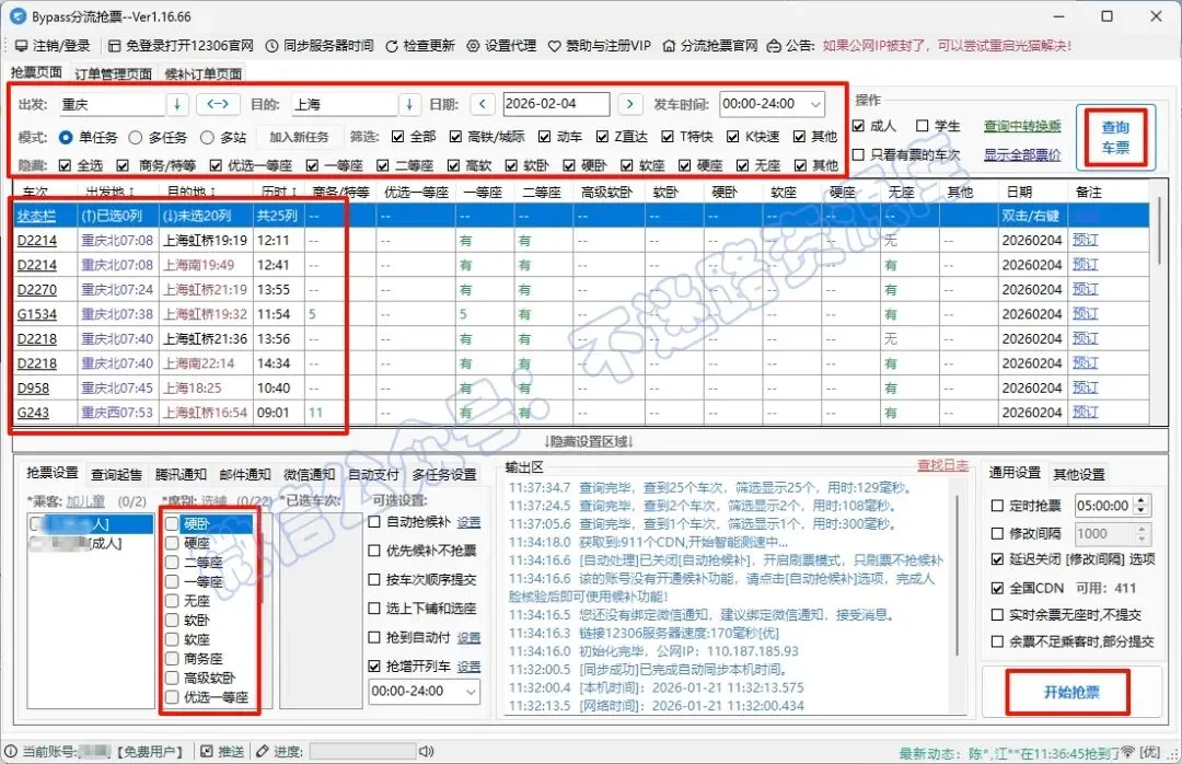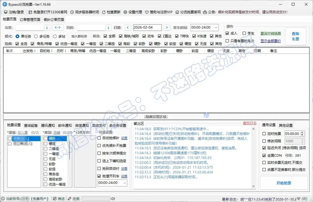 Bypass分流抢票软件,易操作强大的12306抢票软件,全程自动抢票,云识别验证码打码,多线程秒单、稳定捡漏,支持抢候补票、抢到票自动付款,支持多天、多车次、多席别、多乘客、短信提醒等功能。这款辅助软件更新勤快,适合长时间挂机自动抢票自动发送通知,同时刷到票后自动提交订单你只要付款即可,可以直接在工具内查询订单和付款以及退票操作等,助你出行抢车票不在困难。