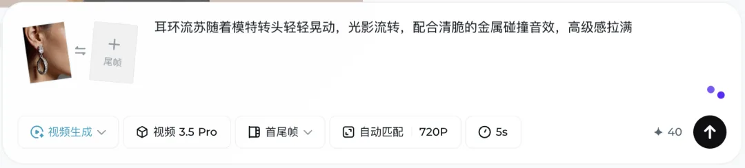 一键转视频,耳环流苏随着模特转头轻轻晃动,光影流转,配合清脆的金属碰撞音效,高级感拉满。