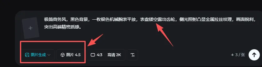 打开即梦官网https://jimeng.jianying.com,选择 图片4.5模型 ,聚焦腕表机械纹理与金属质感。