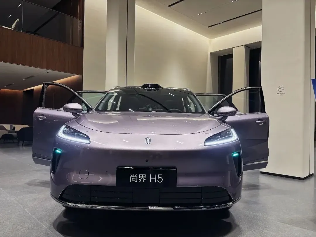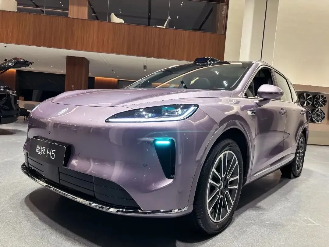 尚界H5定位中型纯电 SUV,车身尺寸为4770mm×1930mm×1660mm,轴距达到2880mm,宽敞的轴距为车内空间提供了充足保障,无论是前排驾驶位还是后排乘坐空间,都能带来舒适的驾乘体验内饰采用紫灰双色拼接设计,搭配大面积软质包裹与木纹装饰,质感出众。中控台配备 15.6 英寸悬浮式中控屏,搭载鸿蒙智行智能座舱系统,操作流畅且功能丰富;车内配备 3D 旋转音响,支持沉浸式音效体验;座椅采用皮质材质,支持多向电动调节与加热功能,舒适性拉满;此外,车内还配备全景天幕、无线充电、氛围灯等配置,提升了整车的豪华感与实用性。空间表现尚界 H5 的空间表现十分出色,前排头部空间充裕,后排腿部空间达到两拳以上,乘坐舒适性极佳;后备箱常规容积为550L,放倒后排座椅后可拓展至1600L,满足日常出行与长途旅行的储物需求;此外,车辆还配备前备箱,进一步提升了储物空间的实用性。