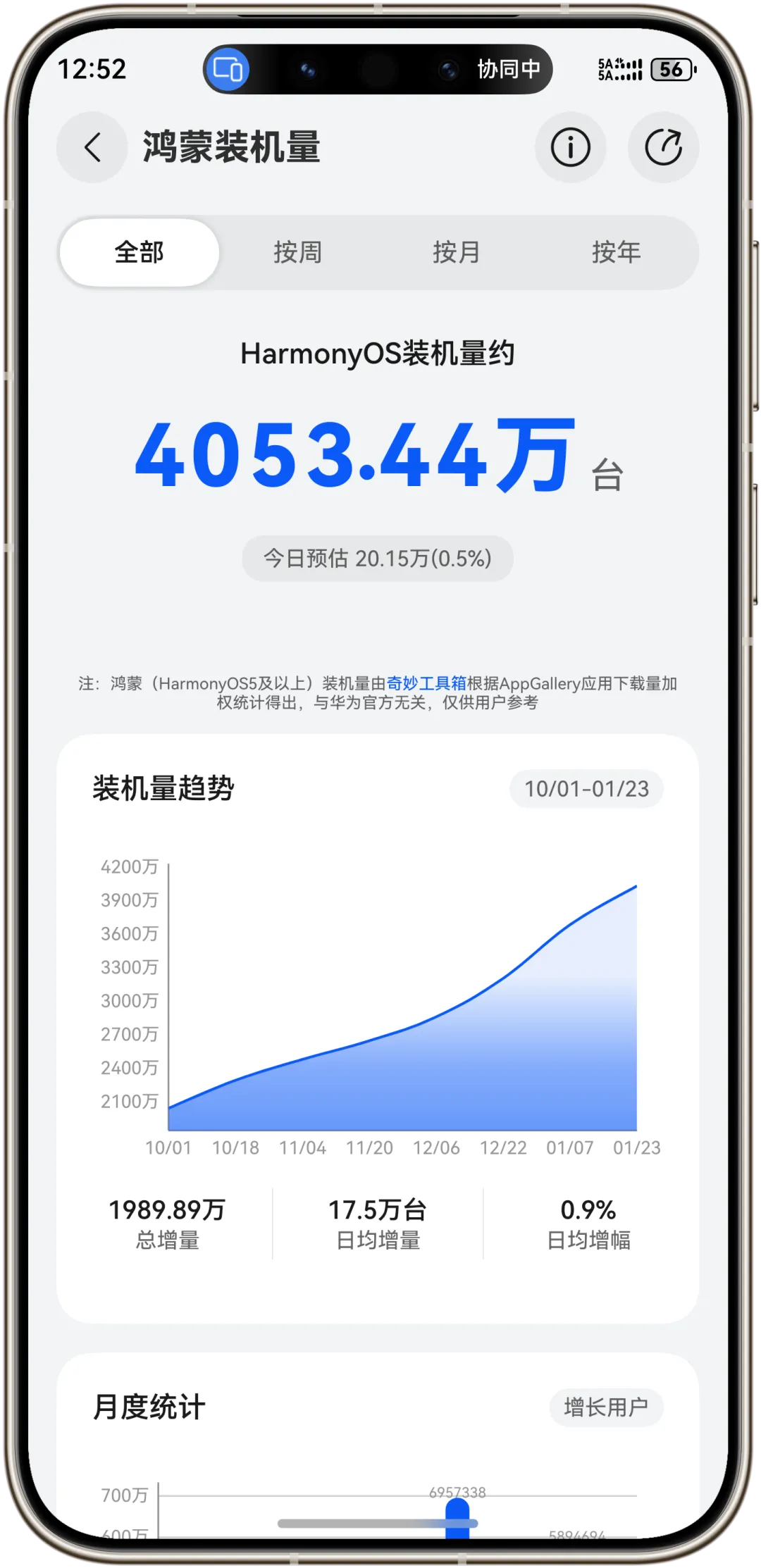 目前已有爆料信息显示,截至2026年1月24日,华为原生鸿蒙(以HarmonyOS 6为核心)的装机量已突破4053.44万台。