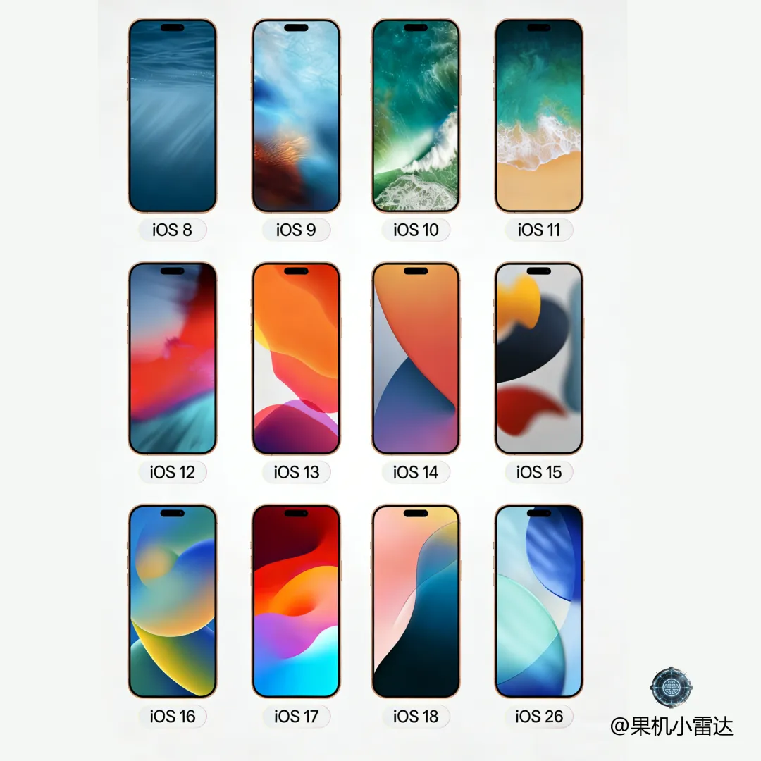 ✨ 存图党狂喜!从 iOS8 到脑洞大开的 iOS26,12 张壁纸一次打包,每张都是可以直接设为锁屏的高清质感。建议下载收藏,每天一张换着用👇🌊 把整片太平洋揣进兜里的深邃感。当年第一次解锁时,谁没对着波纹动效戳了又戳?🌅 像傍晚海边的橘子汽水。暖调过渡柔和,是早期 iOS 里最温柔的一张。🌊 老果粉的「白月光」壁纸。解锁时的动态浪纹,是青春里最治愈的小确幸。🏖️ 把度假感装进屏幕。暖黄沙滩 + 清新海浪,当年换完系统就立刻锁死这张。🎨 打翻调色盘的活力感。红紫蓝的碰撞,让每次点亮屏幕都像拆盲盒。🔥 当年刷屏级的「氛围感神图」。热烈又鲜活,配透明手机壳直接封神。7.iOS 14 | 几何块渐变