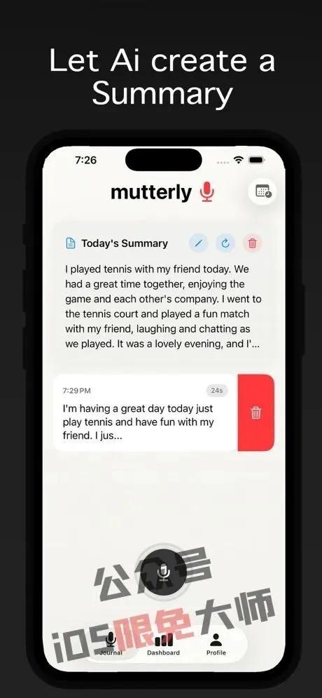 【Mutterly】一款快速15秒语音笔记工具。将你散乱的想法转化为有意义的日常反思——非常适合那些不费吹灰之力就想要正念的忙碌的人。