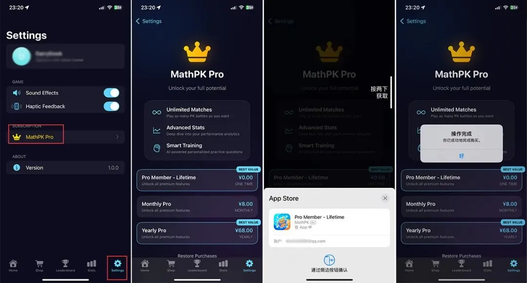 3,仔细核对支付界面没有显示价格后,确定支付,获取内购。注意:
