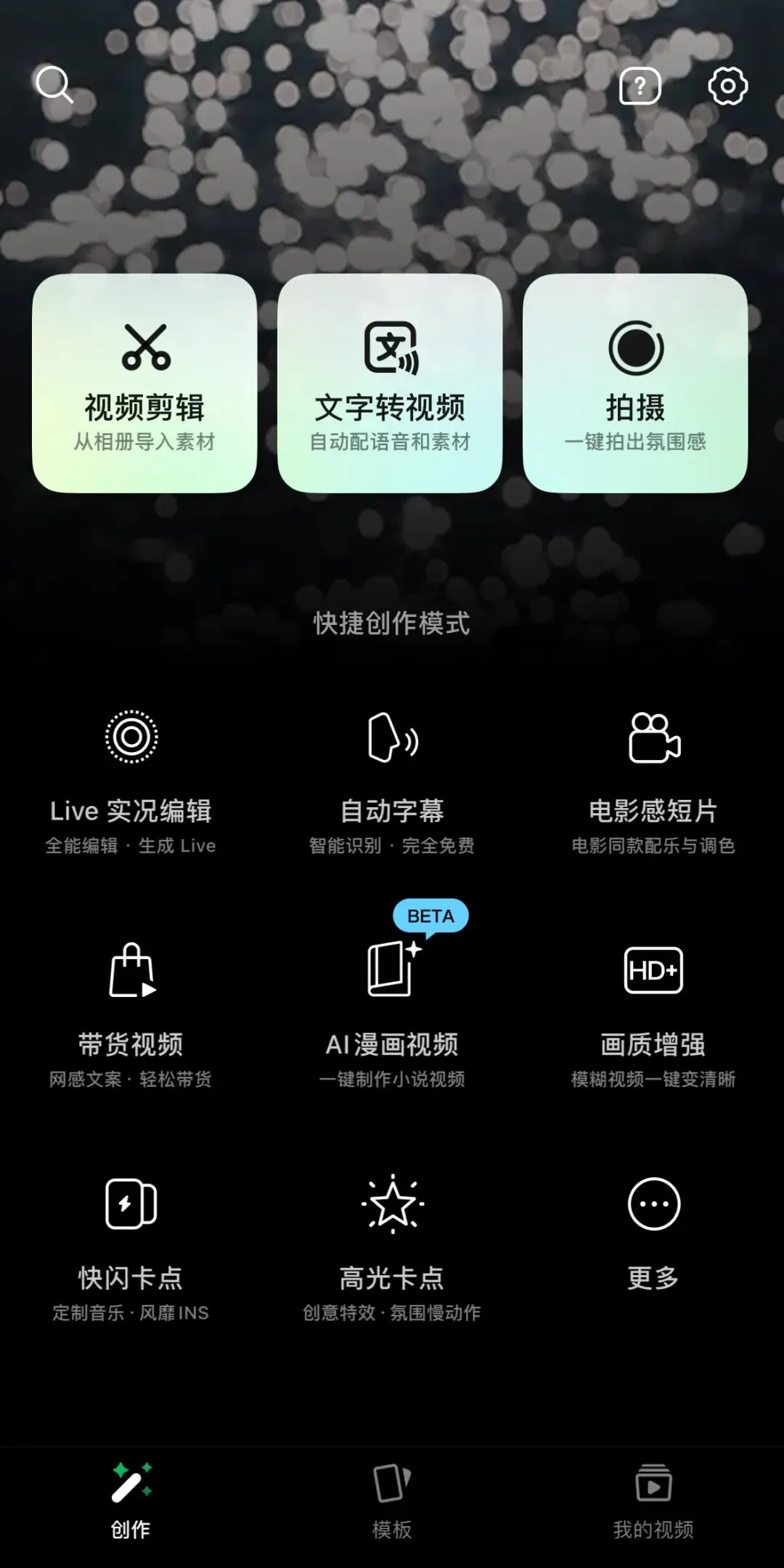 这款应用最核心的竞争力是其强大的智能剪辑能力。它不仅能完成基础的剪辑、滤镜、特效和文字贴图功能,更重要的是具备真正的AI智能。