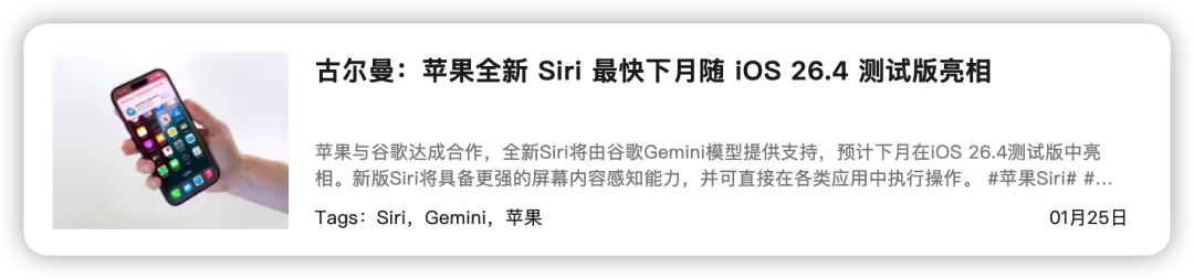 白哥用一句话形容苹果计划在2026年春季推送的iOS26.4,那就是:苹果终于认清现实,准备用谷歌的AI,把Siri从“人工智障”拉回正常水平。