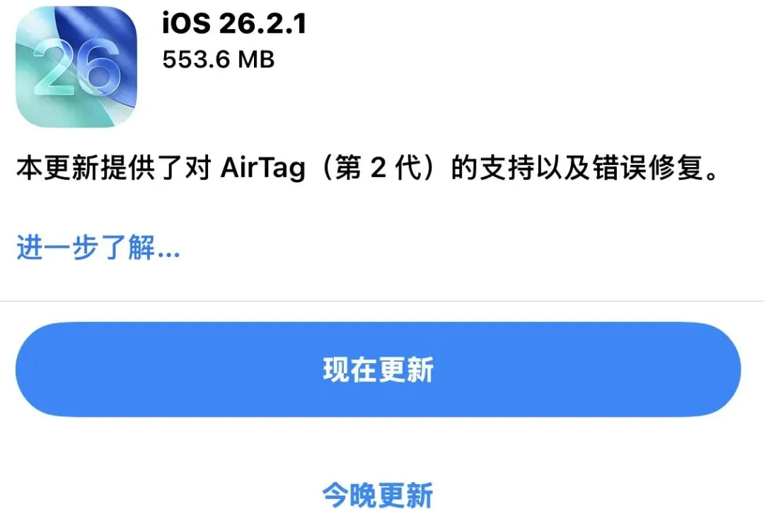 当前位置:首页>iOSAPP>iOS 26.2.1正式版发布