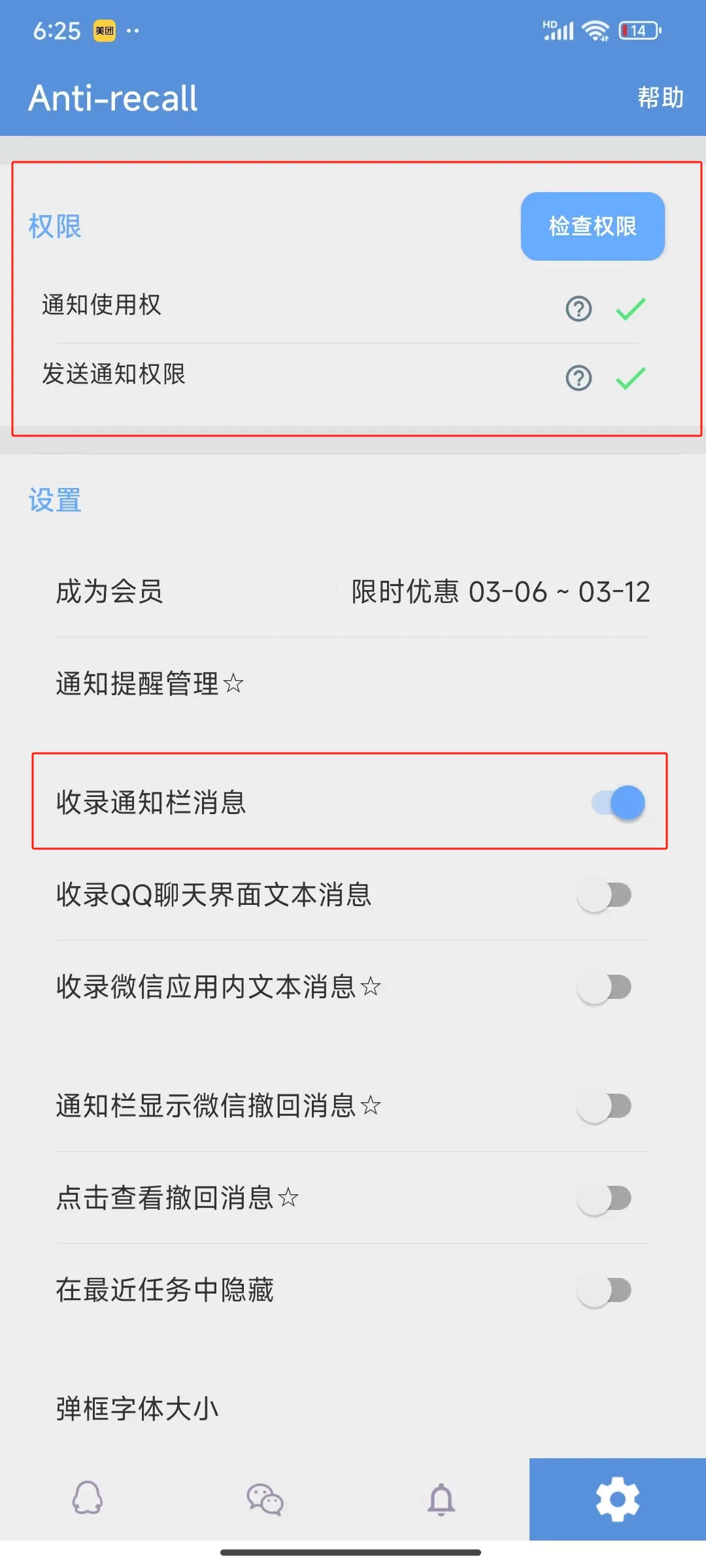 上面两个权限打开之后,还需要打开【收录通知消息】,如图所示: