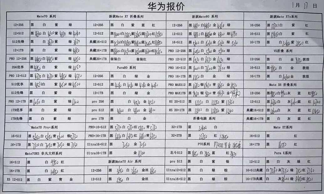 华为平板手表和三星报价不常更新