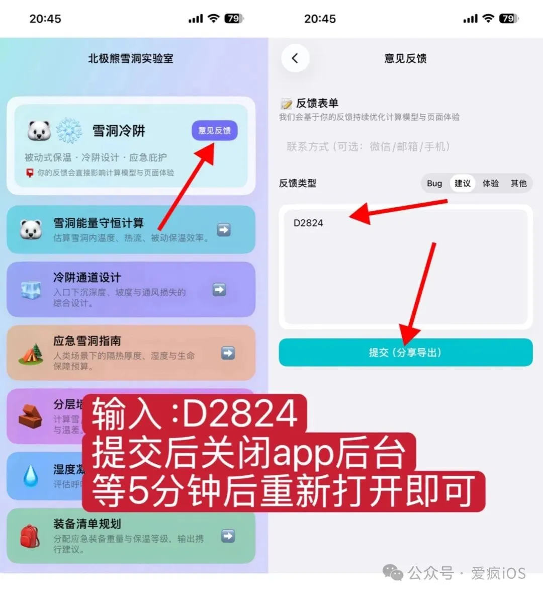 右上角意见反馈,输入:D2824,提交后划掉app后台,等5分钟后重新打开即可