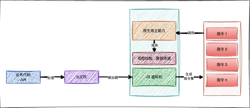 动态化- 罗码(Roma,后文统称动态化)是一个完全自主研发的一站式跨平台解决方案,一份代码,可以在 Android、iOS、Harmony 及 Web 上运行。动态化的跨端原理与 React Native 、Weex 一致,在吸取业界各跨端框架优势的基础上,加上自主创新,打造的一个完全自主可控的综合跨端解决方案。其跨端的理论基础在于各端都具备统一解析和执行 JavaScript 的能力(JS 虚拟机)。业务代码被打包成 js 文件,在各端被 JS 虚拟机加载,被解析成多条不同功能的指令,调用原生宿主能力,完成数据的传递和视图的绘制。示意图如下:
